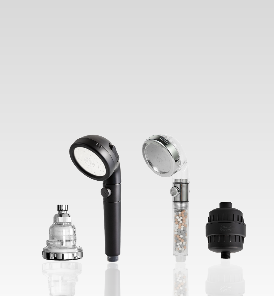 Stage 2: Ceramic Energy Stones (pH Balance & Skin Health) Naturally balances the water's pH levels to help adjust your skin's elasticity, improve hydration, and reduce inflammation.