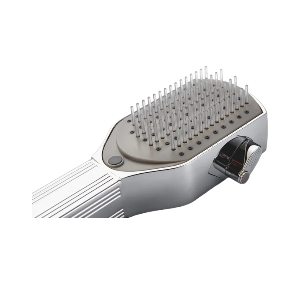 The comb features bristles that can be extended or retracted using a button on the shower head. This allows for easy detangling of hair, scalp massage, and even distribution of shampoo.